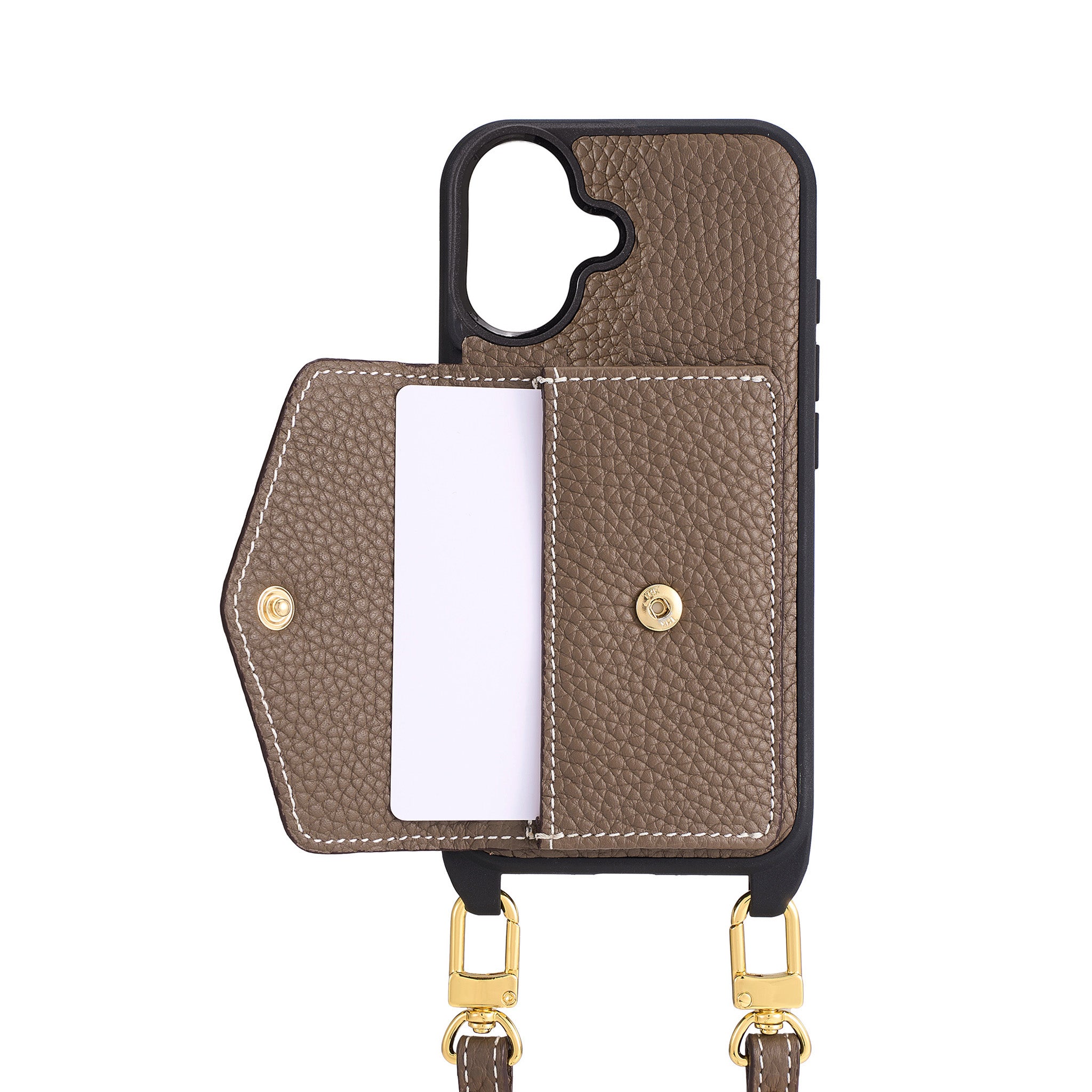 Through trial and error, we have strengthened the connection between the iPhone case and the shoulder strap to ensure it can be used for a long time.The shoulder strap has also been made thicker and individually finished with a lacquered edge, giving it a luxurious finish.